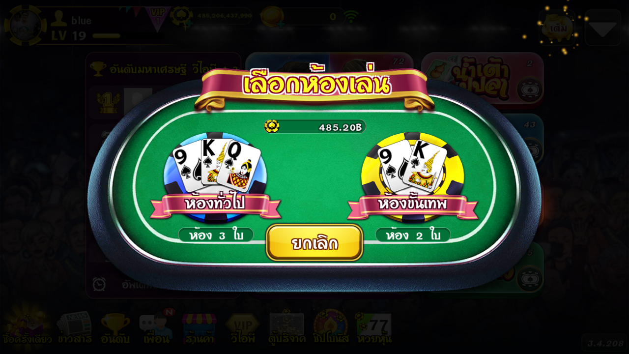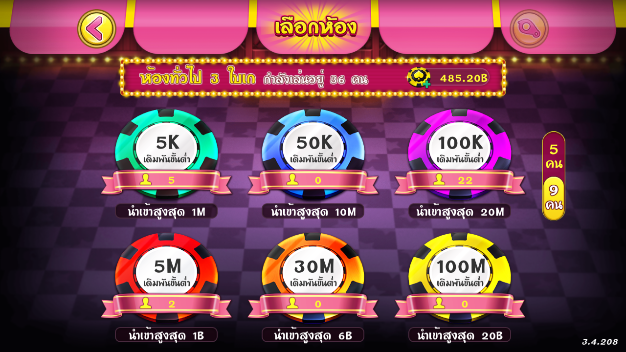 2. เลือก ประเภทห้อง และ ชิปในการเดิมพัน